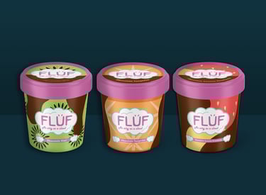 Final render of the FLÜF ice cream design in 3 different flavors. The playful Pints were designed to appeal to a wide audience white being a more binge type of desert.
